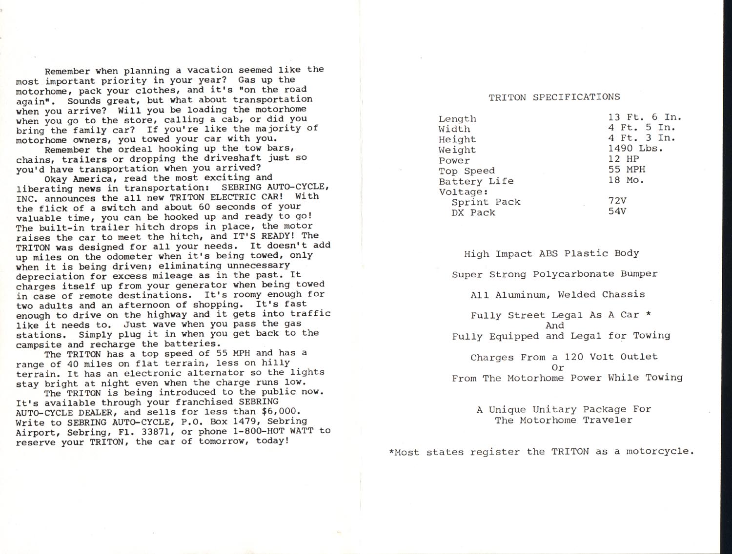 like the CitiCars and Comuta-Cars. (The following four items come