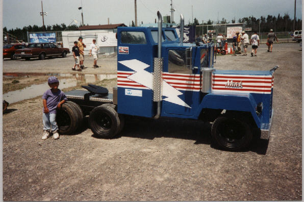 Although not eligible to participate, the two vehicles from St. Francis Xavier High School of Hammond ON stayed for most of the event and showed their vehicles on the track between heats. The miniature replica of the Mack truck (colour - 58k) was a particular crowd pleaser, and led the vehicles for the second heat onto the track.